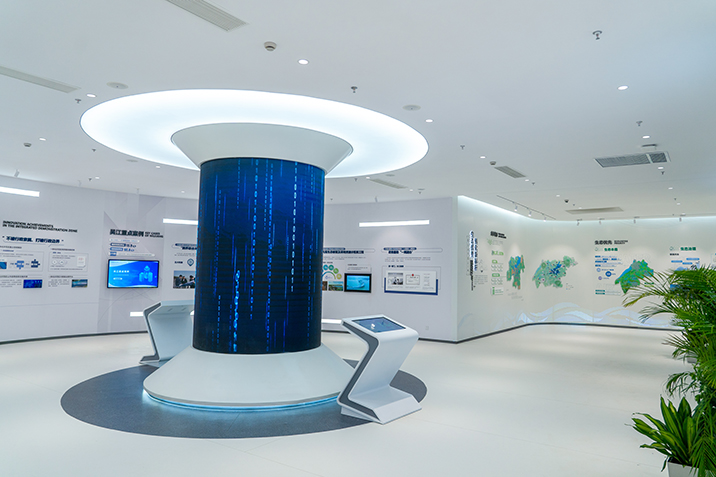 長三角生態(tài)綠色一體化發(fā)展示范區(qū)吳江區(qū)展示館項目位于蘇州市吳江區(qū)吳江大廈南廣場,項目面積1330平方米,為設(shè)計、采購、施工工程總承包。展示長三角一體化發(fā)展戰(zhàn)略提出以來,吳江地區(qū)的堅決貫徹與生動實踐,展現(xiàn)吳江地區(qū)結(jié)合地方實際的特色工作與顯著成績。本項目為改建項目,金螳螂文化團隊對場地進行考察,對現(xiàn)有設(shè)備進行拆除及合理應(yīng)用,綜合考慮使用效果、投入成本、展陳更新等多方面要求。