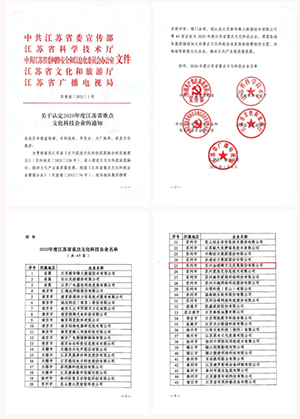 公司榮獲“2020年度江蘇省重點文化科技企業”。