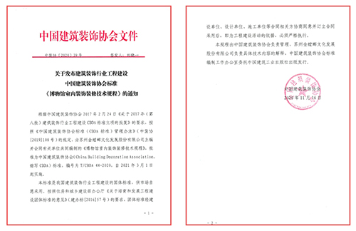 公司主編的首部CBDA博物館裝飾規程《博物館室內裝飾裝修技術規程》發布。