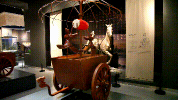 操作展臺上的轉(zhuǎn)動盤,車體同步旋轉(zhuǎn)而指示方向道具小人不動。通過這個復(fù)原機(jī)械互動裝置,感受古代科學(xué)家對測量距離機(jī)械裝置的研究和探索精神。