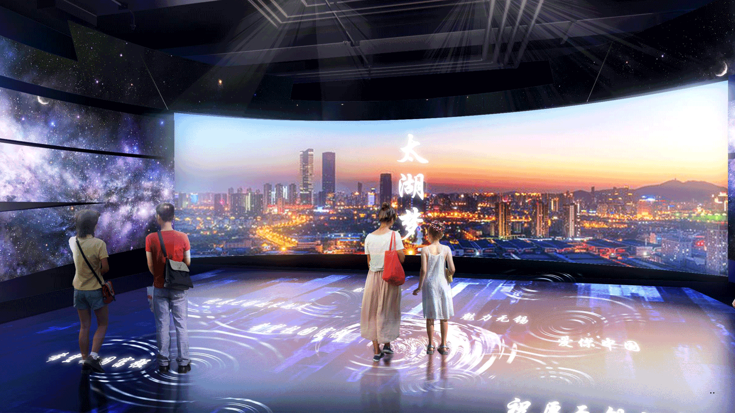 在《太湖美》的悠揚(yáng)樂聲中開啟一段筑夢之旅,展望更美好的城市未來。運(yùn)用大型投影互動墻的形式使觀眾在此體驗(yàn)未來無錫人的1天,在智能生活、消費(fèi)水平、便捷出行、健身運(yùn)動、學(xué)習(xí)工作等方面暢想美好生活。