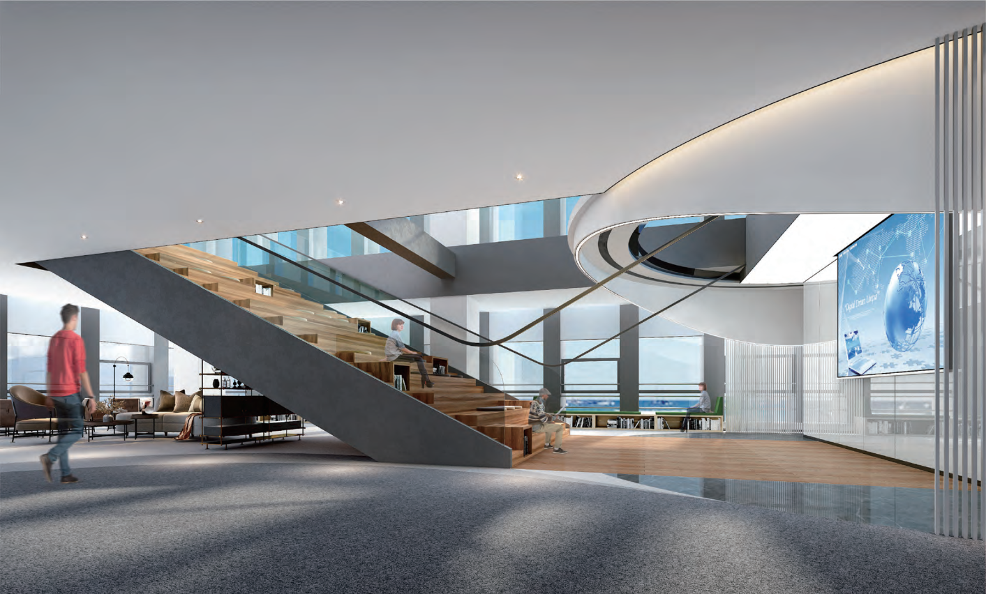 科技感、現代感、生態感具足的人才大廈空間中,高科技互動、大數據智能、專業化服務相互交融。
