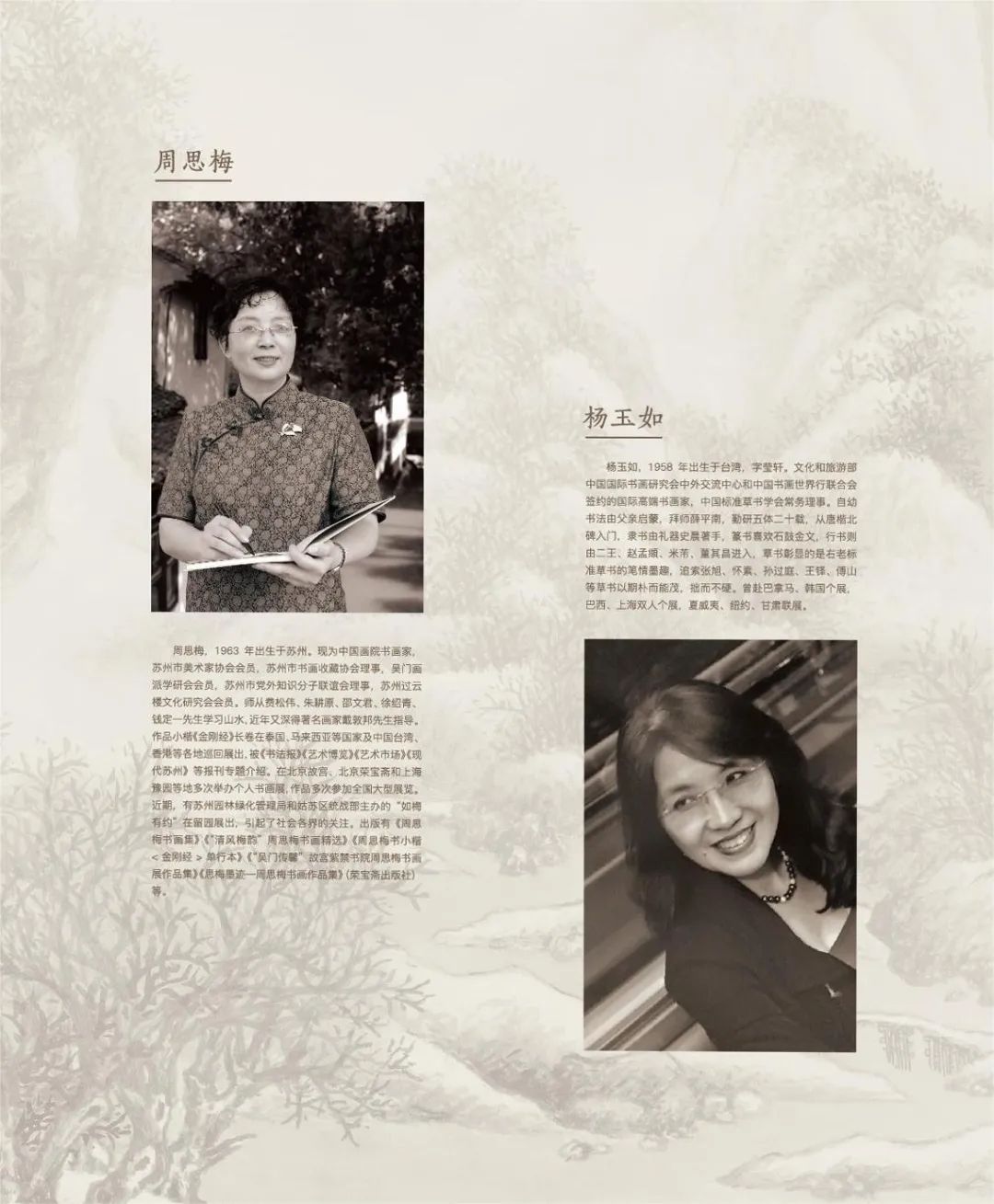 桃花塢里桃花庵 桃花庵里桃花仙 蘇州桃花塢,唐寅故居里 一場墨香飄揚的書畫盛宴如約而至 (視頻號) “如梅有約,聯(lián)璧雙輝”。10月30日,“如梅有約——周思梅、楊玉如書畫聯(lián)展”在桃花塢唐寅故居的文化展示館優(yōu)雅啟幕。 來自蘇州本土和寶島臺灣的兩位書畫藝術(shù)家,用氤氳水墨勾勒心中的底蘊江南,用一紙書畫表達對生活的熱愛。 本次書畫聯(lián)展由蘇州市哲學社會科學界聯(lián)合會、中共姑蘇區(qū)委宣傳部(社科聯(lián))主辦,蘇州名城保護集團有限公司承辦,蘇州桃花塢發(fā)展建設(shè)有限公司、蘇州日報報業(yè)集團文旅體育融媒中心協(xié)辦,金螳螂文化設(shè)計施工出品。 2015年,在一場“海峽兩岸寫經(jīng)展”上周思梅與楊玉如一見如故,并相約聯(lián)合舉辦展覽,各取兩人名字中一字,定名“如梅有約”。2021年,鐘愛江南文化的楊玉如定居蘇州,此后二人一同追摹古人、探討筆墨、追尋江南文脈。 兩位藝術(shù)家以其特有的敏銳和對書畫的獨到見解,創(chuàng)作出一件件佳作,共同在蘇州續(xù)寫了此次江南情緣。 步入展廳,一幅9米長卷映入眼簾,氣勢恢宏,這是周思梅臨摹黃公望的《富春山居圖》。 徐徐向內(nèi)走去,小品、冊頁、扇面、條幅、長卷等150余件作品令人目不暇接,作品涵蓋了山水、人物、竹、梅等題材,全面展示了江南文化特色。 前幾年,周思梅以“吳門傳馨”為主題,在故宮博物院、榮寶齋、上海豫園等地多次舉辦個人書畫展,旨在弘揚中國傳統(tǒng),傳播江南文化,介紹姑蘇人文。 蘇州桃花塢因吳門畫派代表人物唐寅而聞名,此次兩位藝術(shù)家?guī)е餐ǖ慕衔幕斫庠俅巫哌M桃花塢,將傳統(tǒng)文化的韻味傳承延續(xù)。