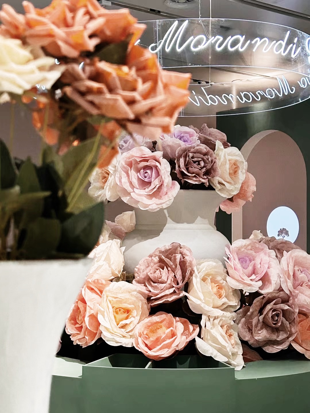 △ 巨大的玫瑰裝置,在呼吸之間,瓶中玫瑰花緩緩盛開,空氣中彌散的淡淡的香氣。