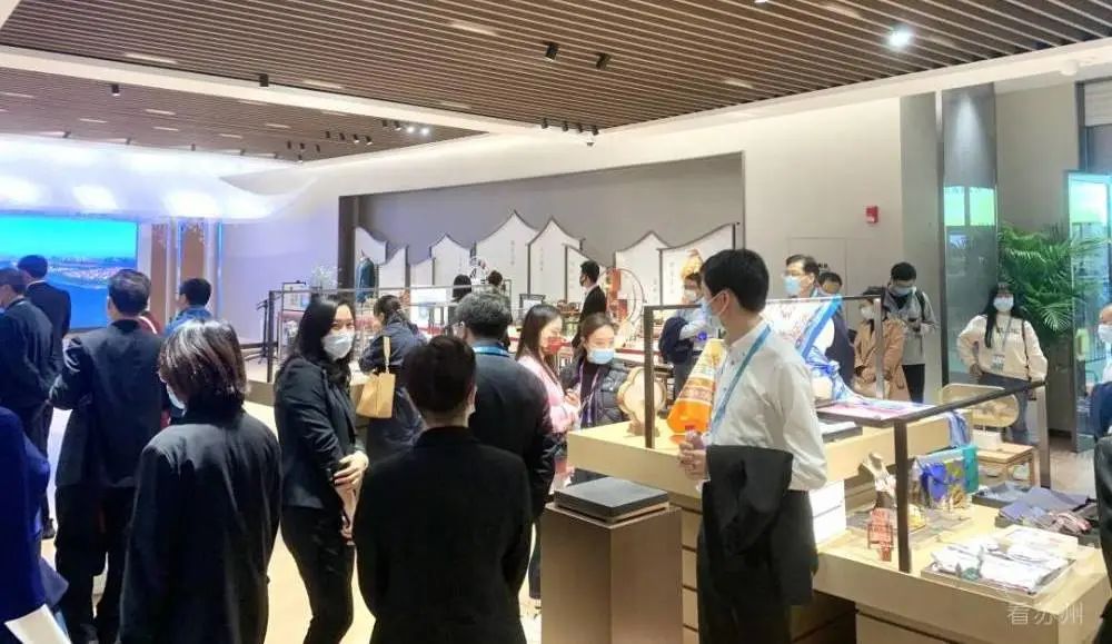 “蘇作館”上海國展中心旗艦店開業(yè)于2021年5月,集中展銷諸多門類蘇作精品,此次進(jìn)博會期間,以古韻新顏的姿態(tài),以滬上“蘇州會商廳”的面目又一次精彩綻放。這扇在世界舞臺傳播“江南文化”魅力的精雅之窗,正成為人文與經(jīng)濟交融共生的“江南樣本”。