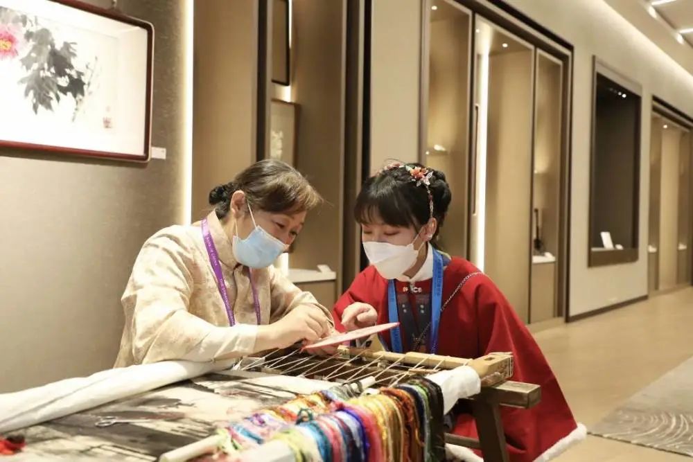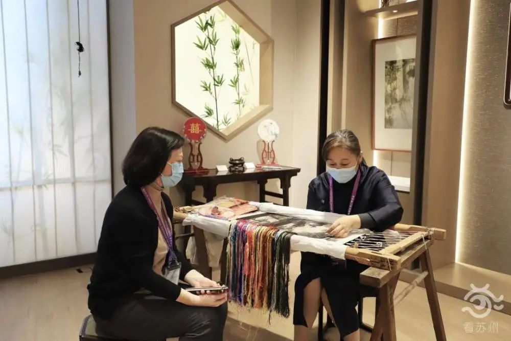 在賓客填門的“蘇作館”,在一件件精巧非凡的蘇作文物中,在宋錦拎包、緙絲旗袍、蘇繡掛件等熱銷衍生品中,在蹲坐著傾聽吳派古琴藝術(shù)非遺傳承人講授知識的年輕人中……“蘇流”正涌向世界。