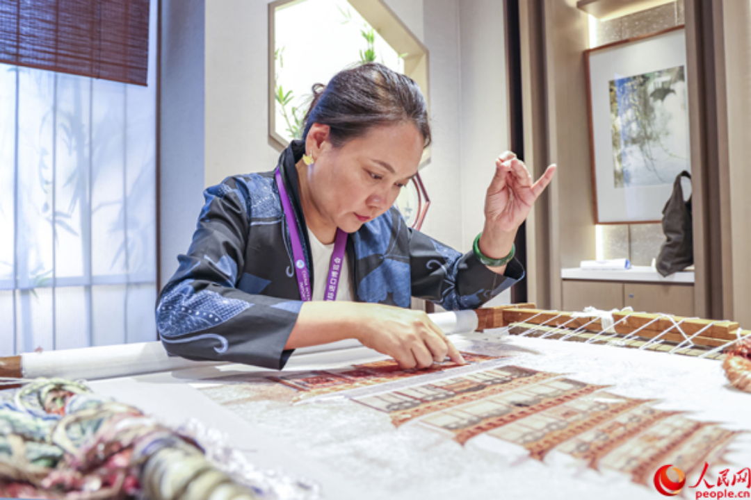 鄒英姿正在繡《花開敦煌》 ·  人民網(wǎng)記者 王初攝