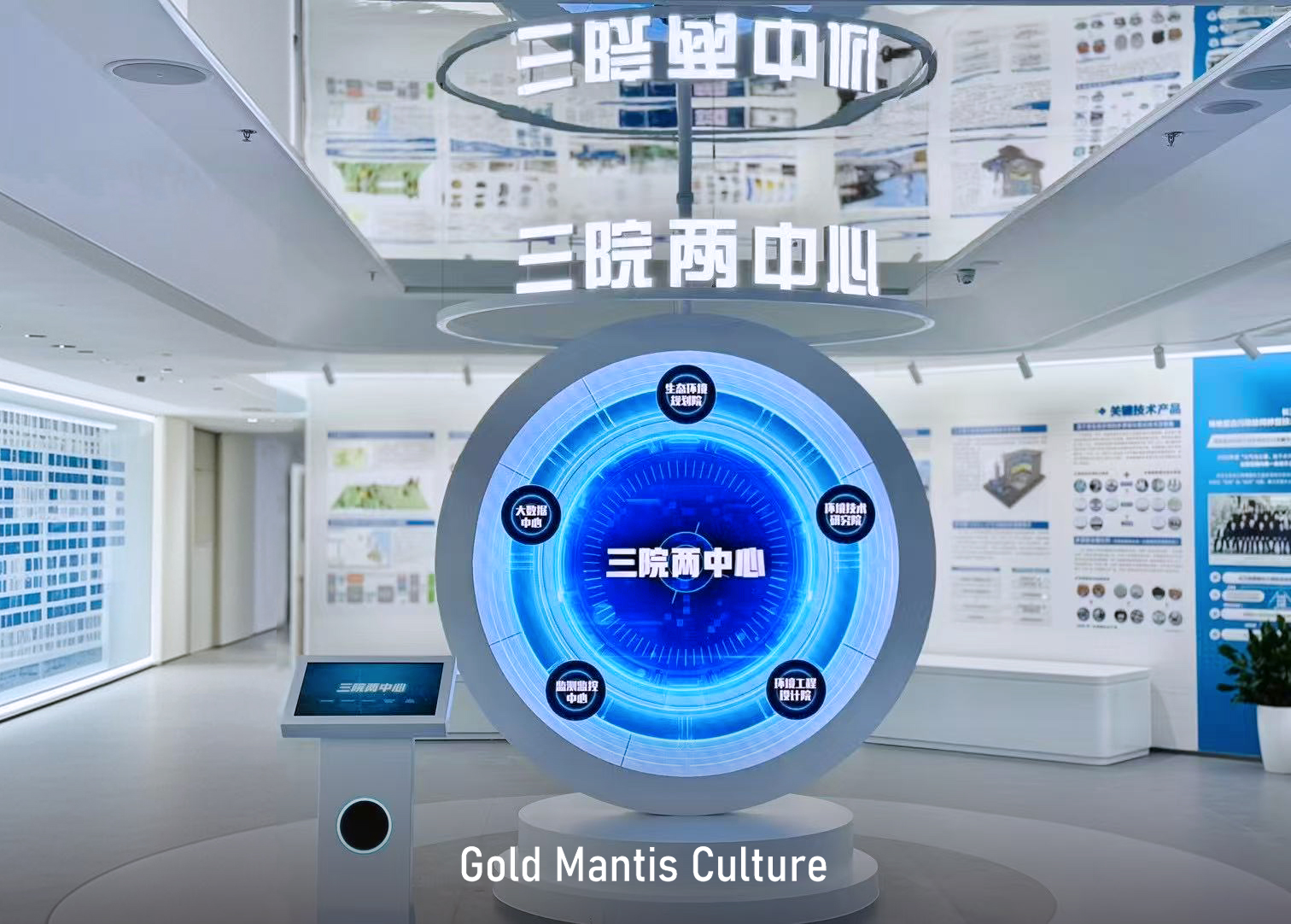 萬里長江順流而東 南京江心洲上春意盎然 在這座“生態科技城、低碳智慧島” 一批高端研發機構相繼落地 由金螳螂文化設計實施的 江蘇省環保集團江心洲科創基地展館 揭開神秘面紗 江蘇環保集團科技創新基地,位于中新南京生態科技島,總建筑面積約14.7萬平方米,由多功能辦公科研塔樓、環保創新實驗裙樓、下沉活動空間等部分組成,著力打造產學研用一體化的高能級科技創新平臺載體和高科技環保產業集群。 步入展廳,映入眼簾的是習近平總書記對保護生態環境、建設美麗中國的指示。 頂面提取自然元素,打造“天幕”,帶給觀眾自然生態感官體驗。 提質向新,逐綠而行。以互動屏幕方式展示三院兩中心架構及介紹。 以藍天碧水凈土、無廢城市、數字環保為落點,重點展示集團業務及綠色產業、裝備制造相關內容。